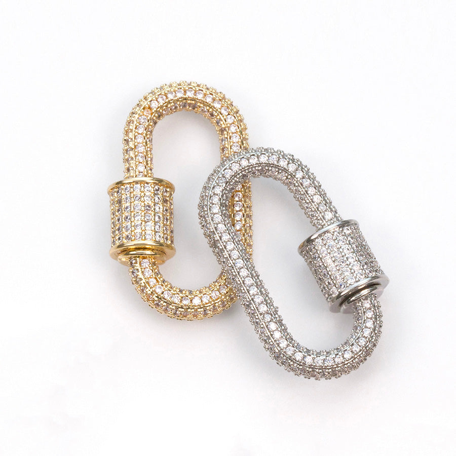 28x17mm Silver Plated with Clear Rhinestones Jewelry Carabiner with Lock Clasp or Pendant. Twist lock makes it easy change out charms and pendants for an interchangeable piece of jewelry.