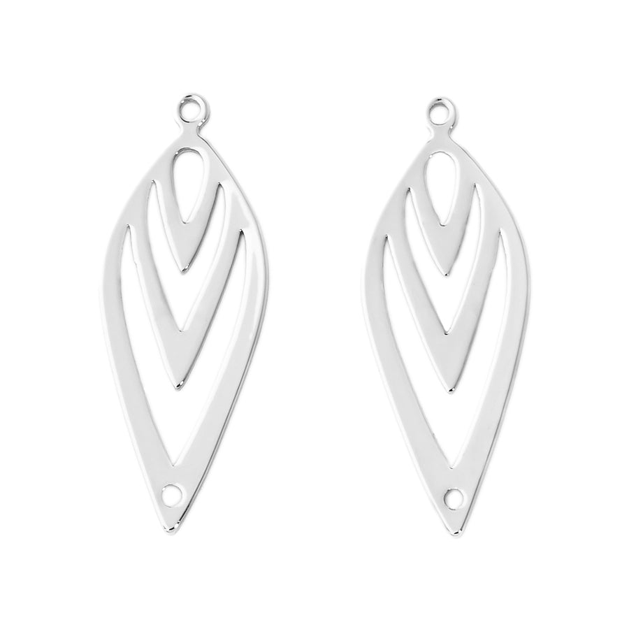 The lines and curves of this connector will work great in a wide variety of designs. From boho to contemporary to elegant, these components are sure to work with all your jewelry styles. Rhodium plated base metal.