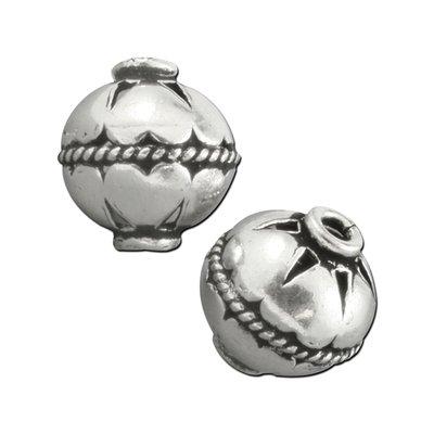11mm silver plated bali style round beads. These silver plated beads are a great alternative to Bali sterling silver, and no one will know the difference! Nickel-free and lead-free, skilled craftsmen specialize in creating a detailed and beautiful finish. These fabulous beads are silver plated over copper.