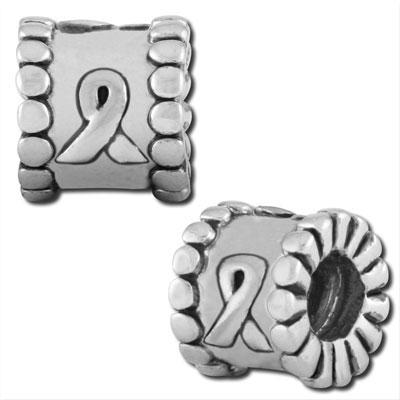 8x8mm rhodium plated symbol beads. Ribbon symbol. Excellent quality and value. Our enhanced rhodium plating process creates an exceptional finish and increases durability. The large 5mm hole is compatible with all major brands of create your own jewelry as well as a wide variety of stringing materials, including our own add a bead bracelets and bangles.