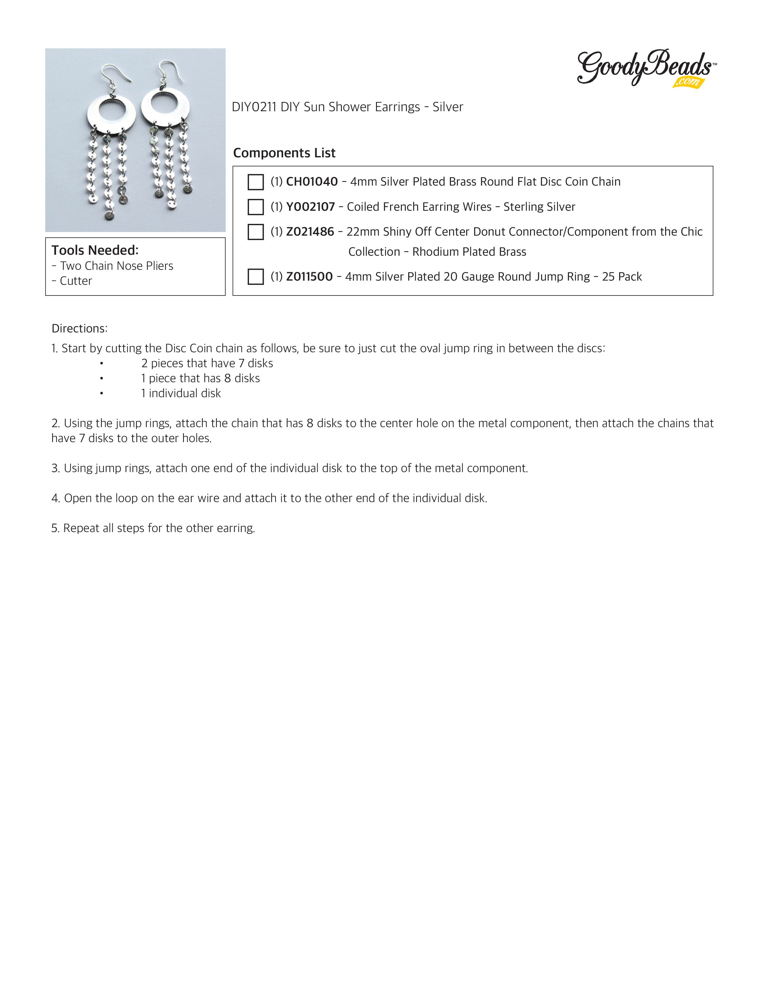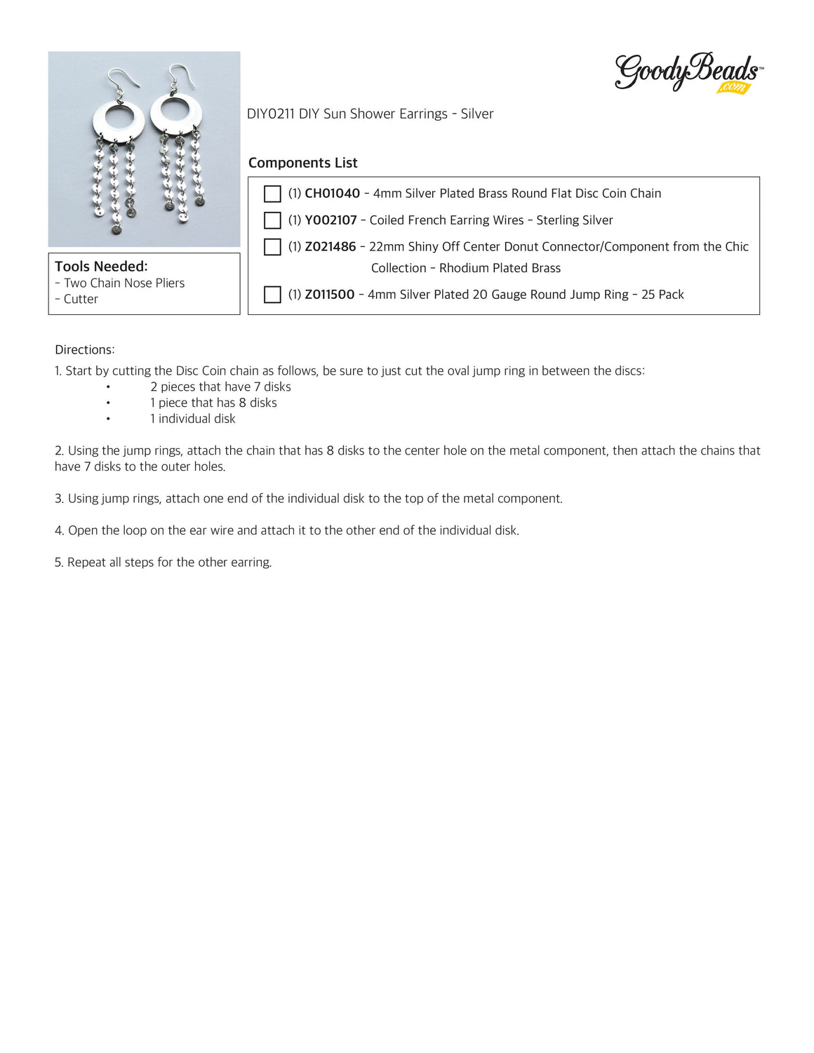 INSTRUCTIONS for DIY Sun Shower Earrings - Silver