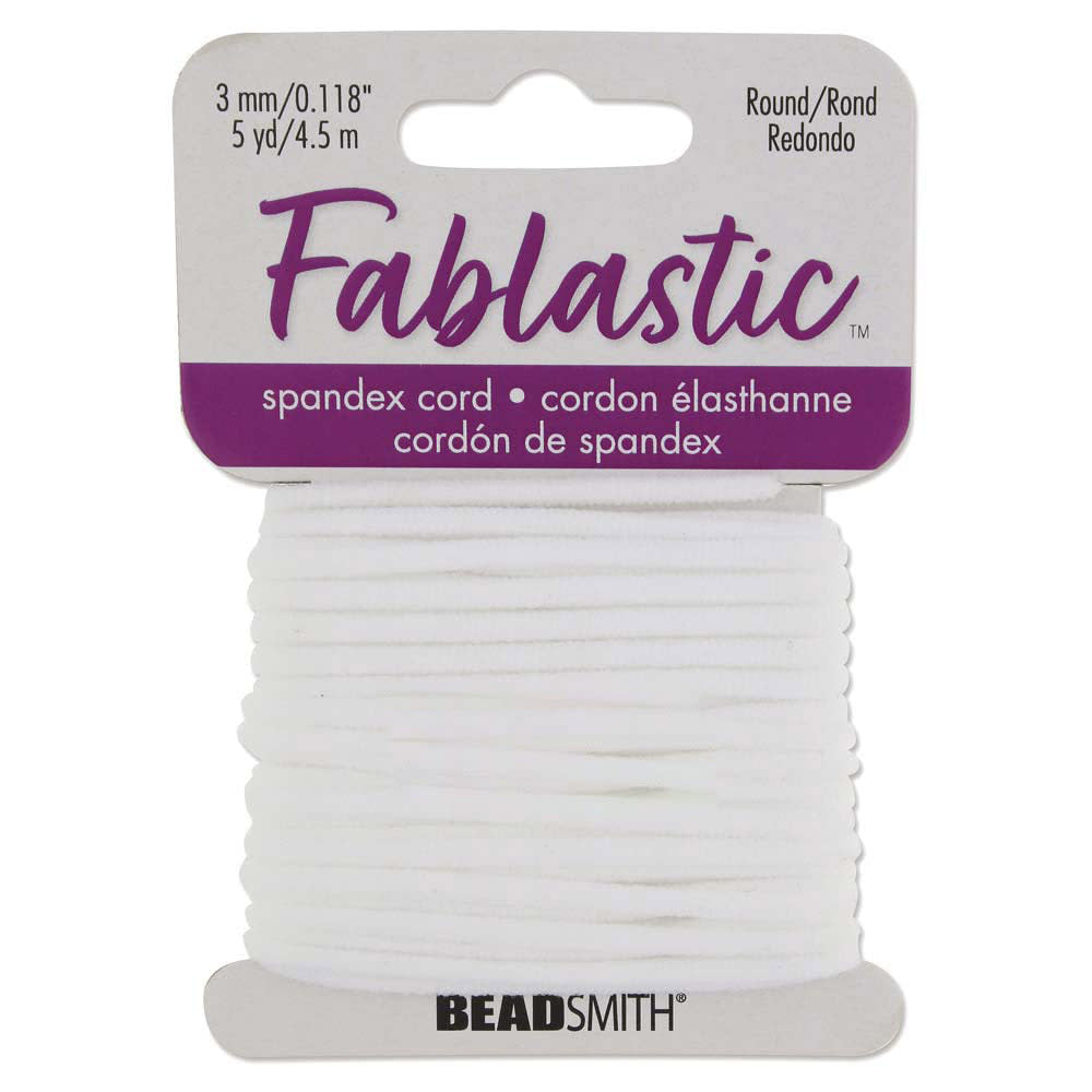 Fablastic Stretch Cord for Mask Making, Round 3mm (0.118 Inch) Thick, White (5 Yards)