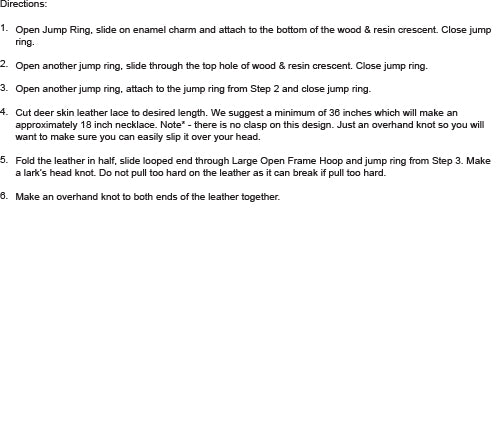INSTRUCTIONS for DIY Wood & Resin Crescent and Enamel Charm Easy Leather Necklace - Black and Gold