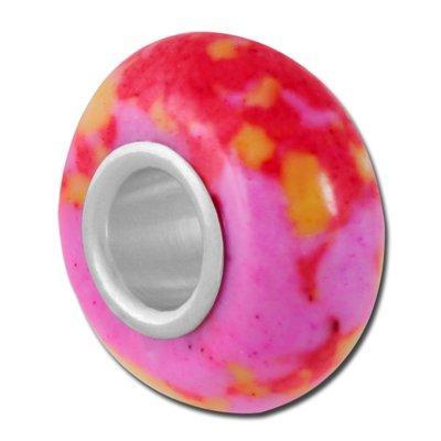 7x13mm Mosaic large hole bead. A beautiful and eclectic mix of shapes and color! The solid core is silver plated over copper and measures approximately 5mm. This interchangeable bead is compatible with all major brands of create your own jewelry as well as a wide variety of stringing materials, including our own add a bead bracelets and bangles. Sold 2 per pack.