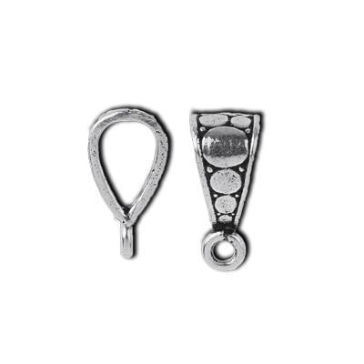 17mm Silver Plated Bali Style Circle Design Bail. These silver plated bails are a great alternative to Bali sterling silver, and no one will know the difference! Nickel-free and lead-free, skilled craftsmen specialize in creating a detailed and beautiful finish. These fabulous bails are silver plated over copper.